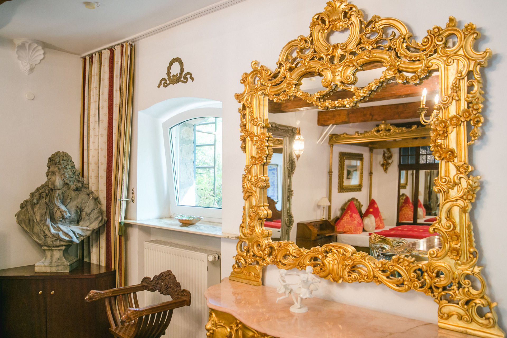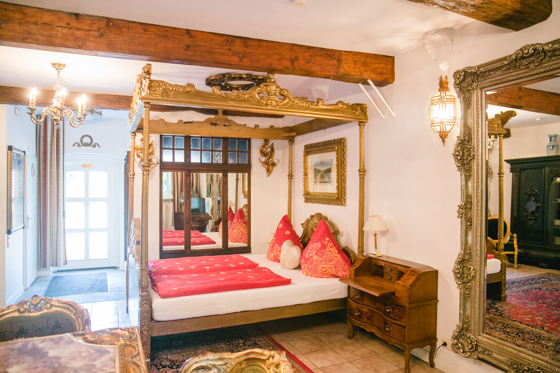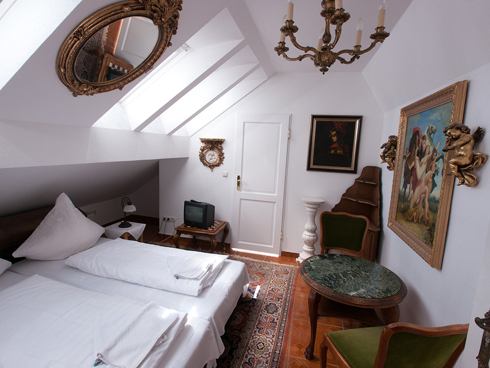 Als Apartmenthotel reichen wir kein Frühstück. Alle Einheiten sind mit eigenen Kleinküchen ausgestattet und bieten den Komfort heutigen Wohnens. Das Lebensgefühl bestimmen jedoch die vielen schönen Stücke aus dem historischen Mobiliar des Hauses.